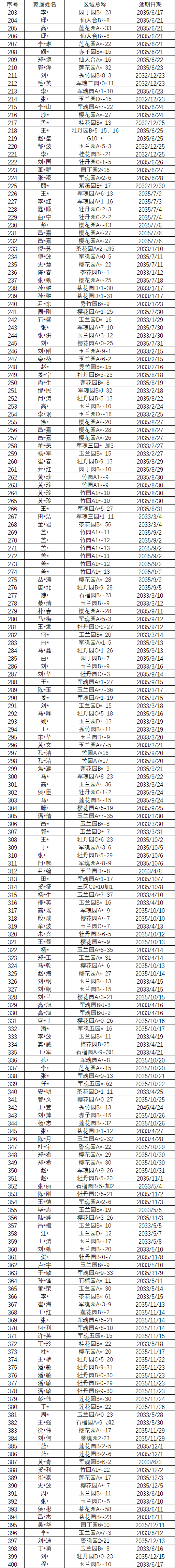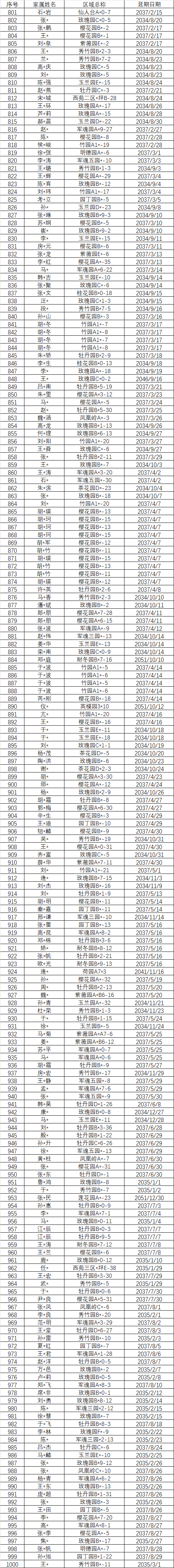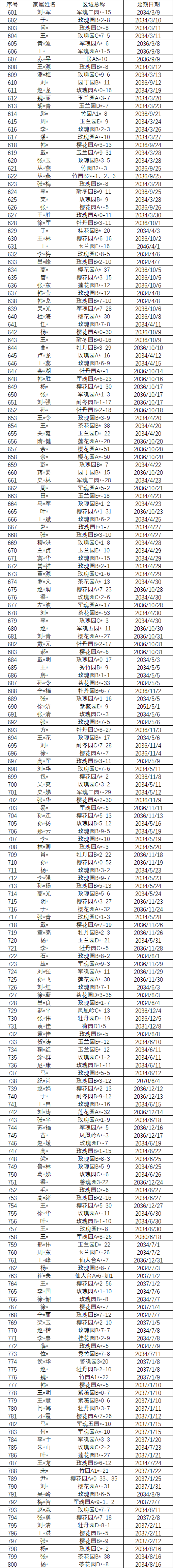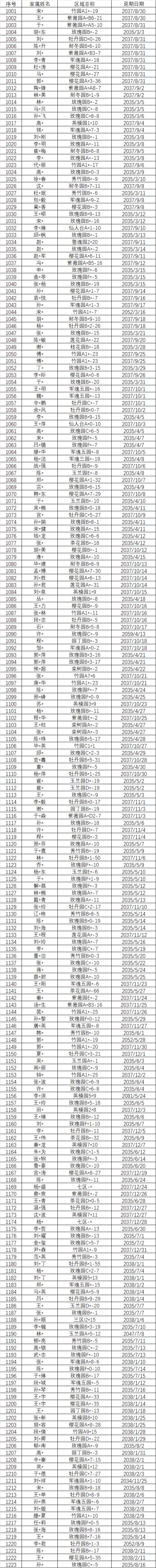 以下墓位明细为未现场办理维护管理费延期或退费的名单,虽未现场办理确认,福宁园已默认做延期,延期日期为墓位维护管理费的到期日。